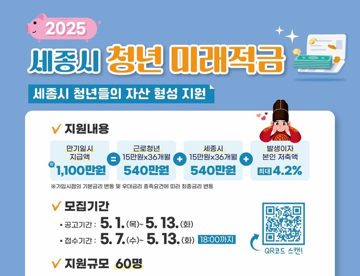 세종시, 1080만원 지원 '청년미래적금' 참여자 모집